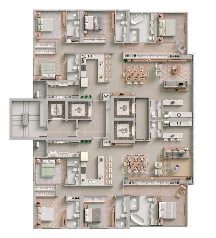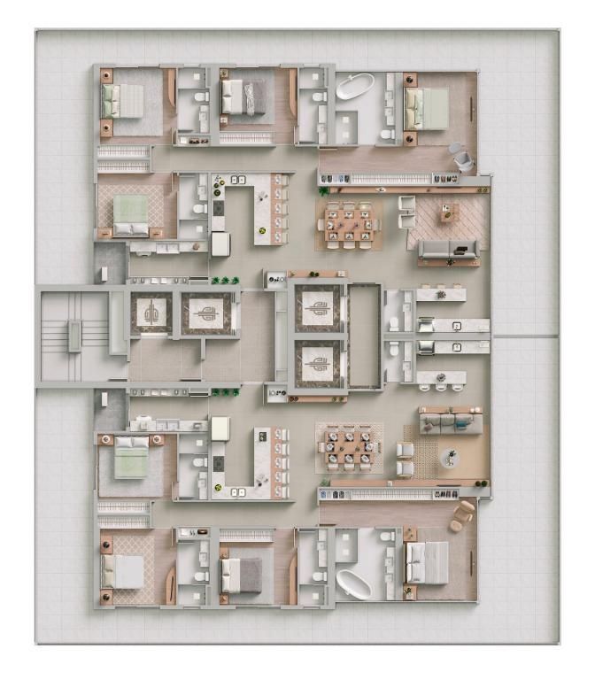 Apartamentos tipo com 4 suítes (1 master com Sala de Banho)